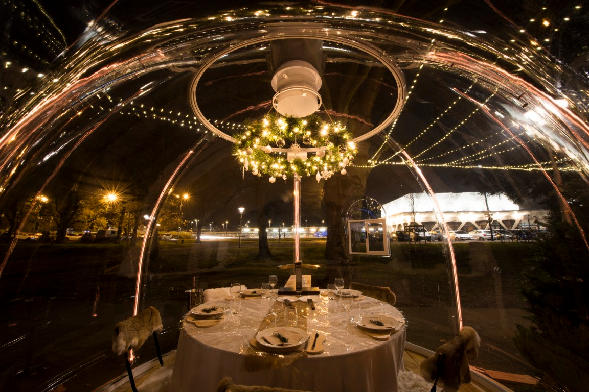 Vivez la magie de Noël autrement avec Les Bulles de Noël, le concept féerique au parc de la gare de Haguenau.